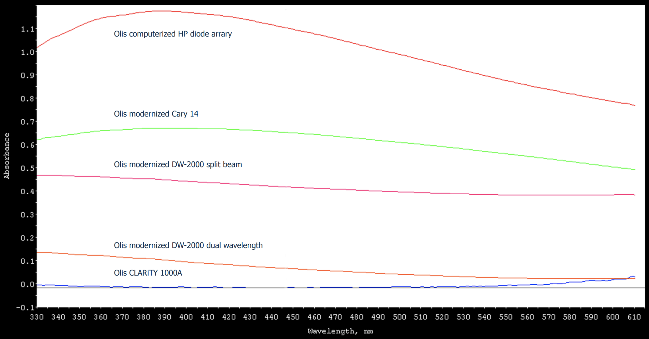 Results from four popular and respected spectrophotometers compared with the Olis CLARiTY 1000